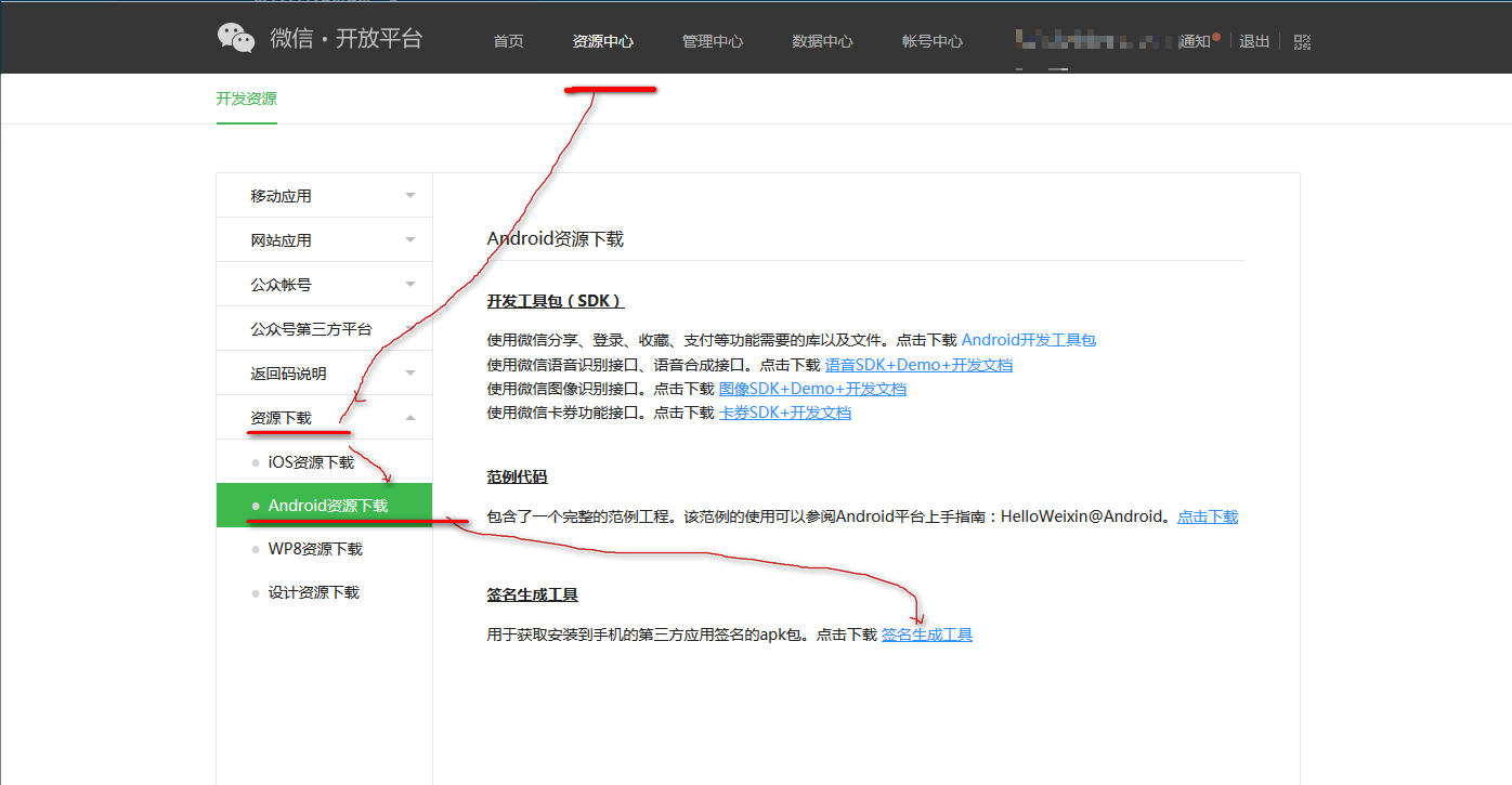 - 到了第二步,这里就选哪种类型的应用,我这里就介绍安卓,安卓手机打正式包安装到手机后,可通过微信签名工具 Gen_Signature_Android221cbf.apk获取应用签名,填入之后,就等待审核通过,如果被拒绝,就按照拒绝理由去修改。