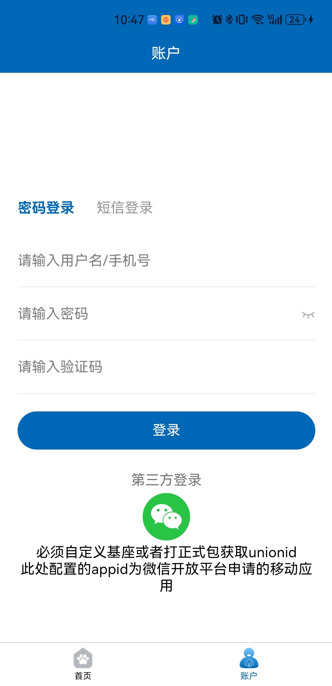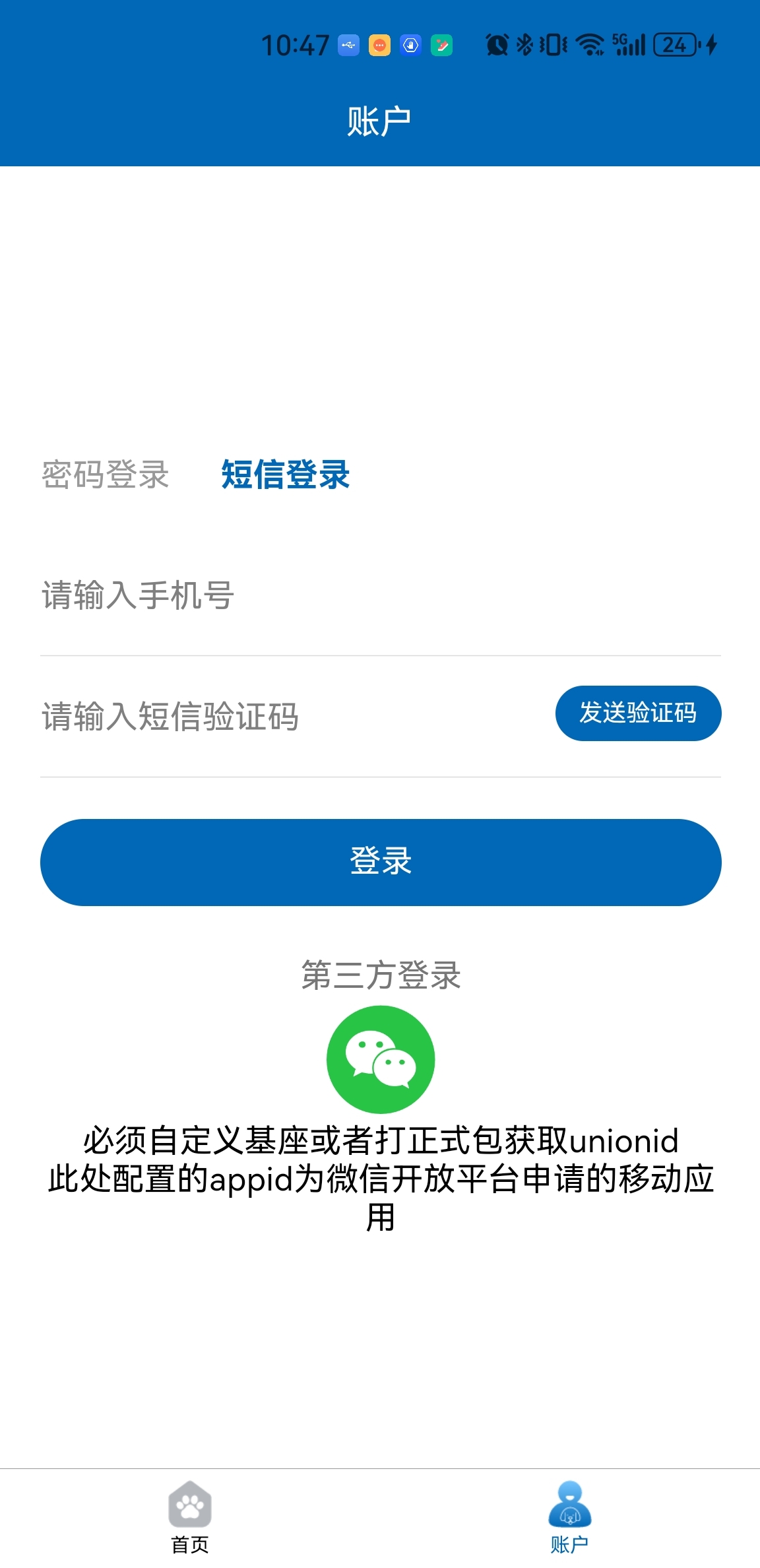 - 移动应用申请通过后可通过APPID微信登录。获取真正的微信登录openId和unionId需要打自定义基座调试或者打正式包。后端需要通过unionId来判断是否已经在小程序中注册过。